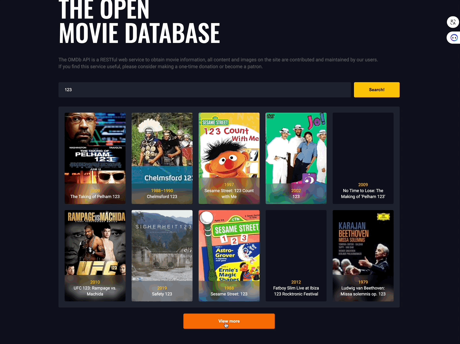실습을 위해 사용한 API는 데이터 요청 시 한 번에 10개씩 반환해 준다. 이때 API에서 page라는 key값을 제공해 주기 때문에 이를 활용하여 더 보기 버튼 기능 구현이 가능하다.