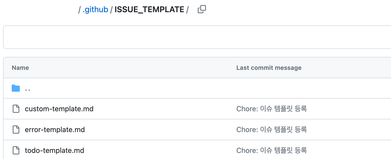커밋이 정상적으로 되면, .github/ISSUE_TEMPLATE/로 생성된 폴더 아래 마크다운 파일이 들어가 있는 것을 확인할 수 있다.
