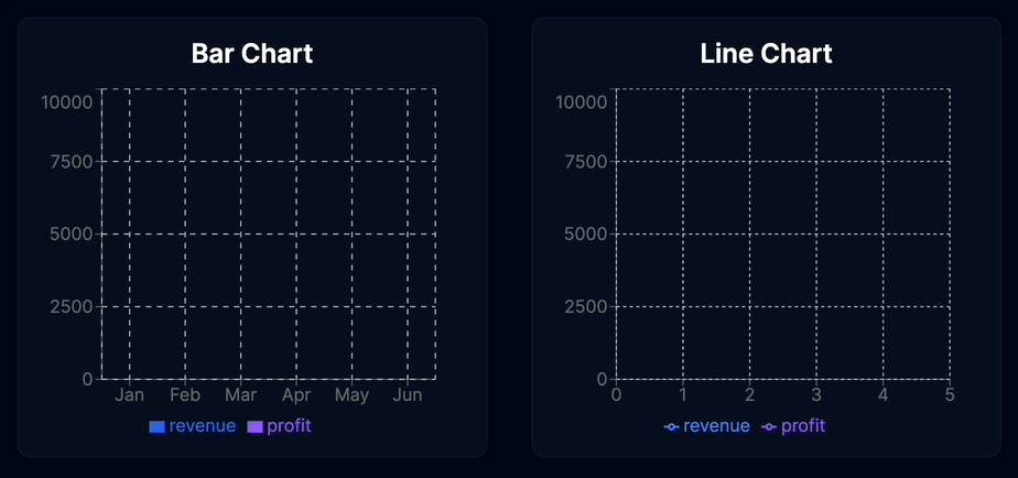 Area Chart와 동일하게 Bar Chart와 Line Chart도 각 차트에 해당하는 컴포넌트만 변경해서 불러와주면 된다.(Chart 컴포넌트를 제외하고는 코드가 동일하기 때문에 코드를 따로 첨부하지 않았다.)