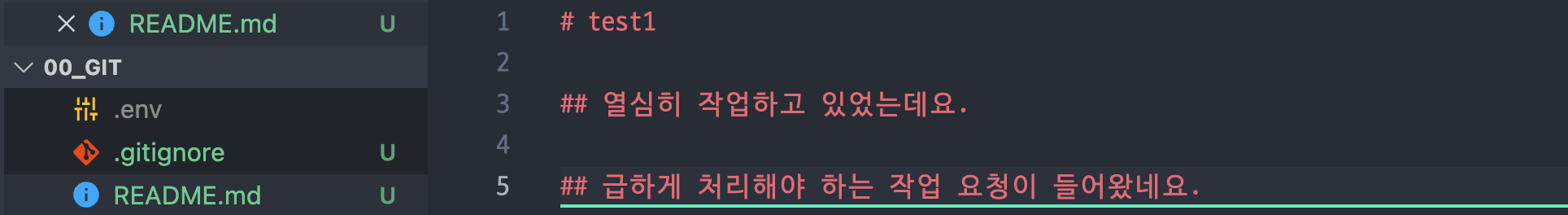 열심히 test1 브랜치에서 작업을 하고 있었는데 급하게 test0 브랜치 작업 내역에 대한 수정 요청이 들어왔다. 브랜치를 이동하여 해당 요청을 처리하기 전에 작업하고 있던 내역을 올려야 하는데, 아직 커밋으로 만들기에는 애매한 상황이다. 이때 사용할 수 있는 방법이 stash이다.